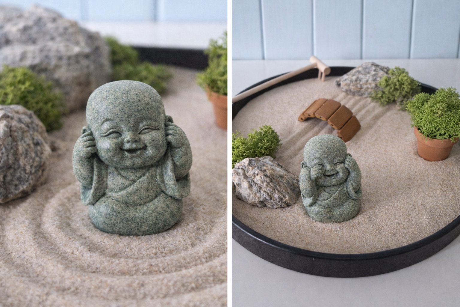 Symbolická soška Buddhy „který nemluví“ v jemném světle šedém matném provedení představuje význam mlčení, rozvahy a vnitřního klidu. Tento půvabný doplněk zenové zahrádky vás denně povzbudí k větší uvážlivosti a vnitřnímu tichu. Vyrobená z kvalitní pryskyřice, precizně a detailně zpracovaná – jednoduše neodolatelná!
