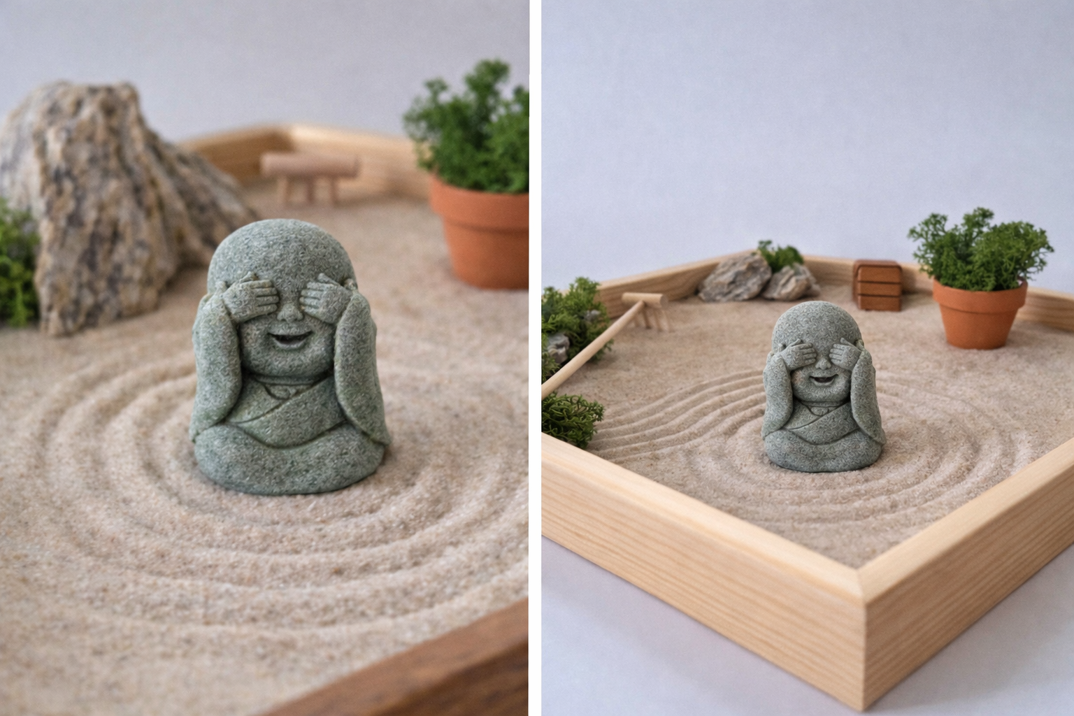 Roztomilá a symbolická soška Buddhy „který nevidí“ v jemné světle šedé matné barvě vás naučí přehlížet malichernosti a soustředit se na to podstatné. Ideální pro ty, kdo touží po klidu mysli, moudrosti a vnitřní harmonii. Vyrobena z kvalitní pryskyřice, detailně zpracovaná a stylová – váš zenový prostor už nebude nikdy stejný!