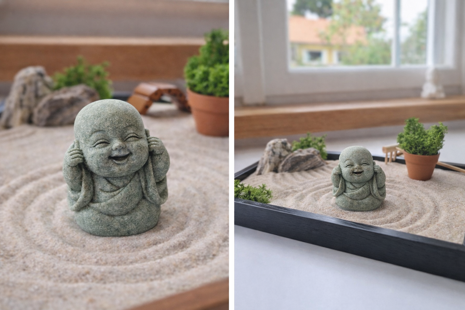 Roztomilá soška Buddhy „který neslyší“ ve světle šedém matném odstínu přinese vaší zenové zahrádce pocit hlubokého klidu a harmonie. Symbolizuje vnitřní rovnováhu a schopnost odolávat negativním vlivům okolí. Její dokonalé zpracování a kvalitní pryskyřice z ní činí mimořádně krásný, pozitivně nabitý doplněk.