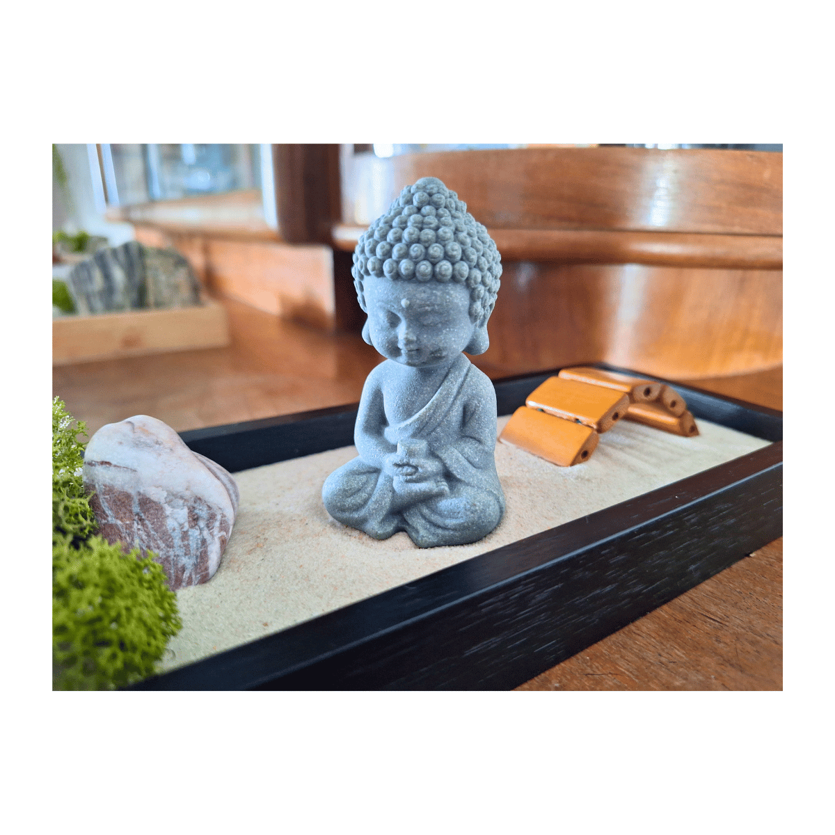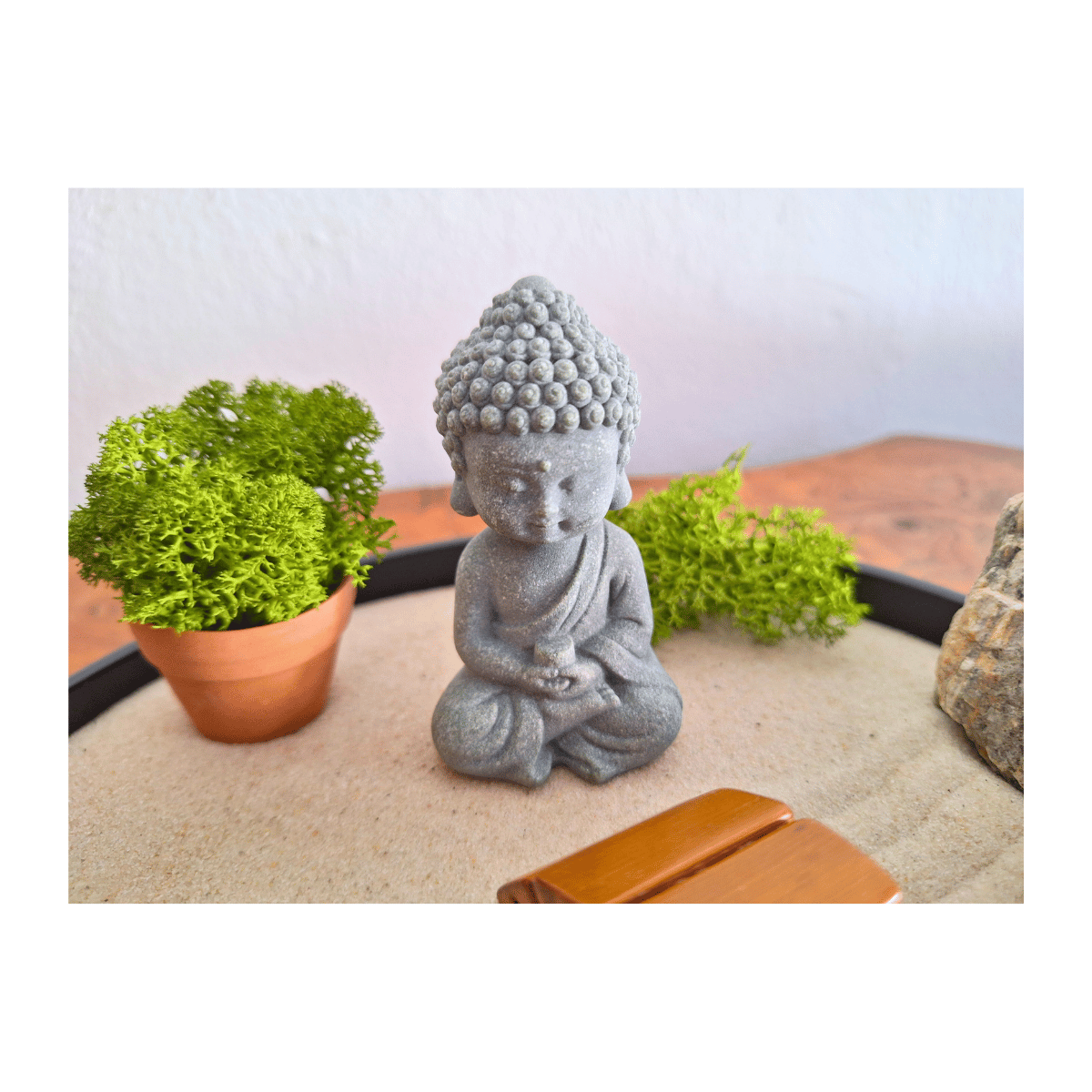 Malý Tathagáta je roztomilá, ale překvapivě výrazná soška sedícího Buddhy. Jemné detaily, klidný výraz a kompaktní tvar z ní dělají ideální doplněk k zenové zahrádce, meditačnímu koutku nebo pracovnímu stolu.